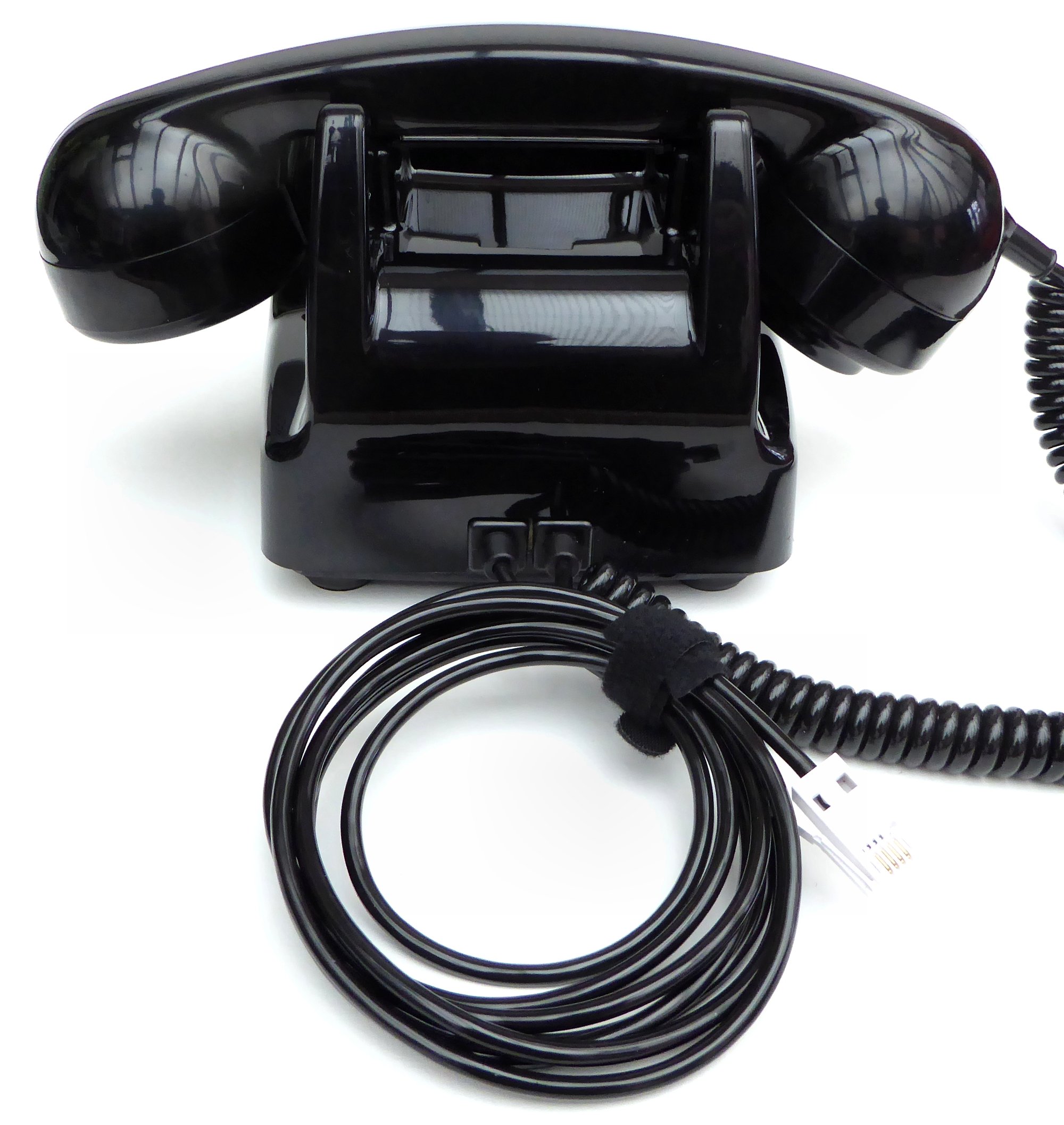 First released in 1959, the 706 was the GPO's first 'modern' telephone with a choice of seven colours and the modern helical plastic handset cord. A true classic, this telephone is recased in black, VoIP ready and in first class working order - ready to plug in and use. Of course it has the quintessential twin bell 'ring ring', a No.21 numeric dial and an electret transmitter unit for high quality speech. It also comes complete with our own reproduction paper furniture on which we can print your exchange and telephone number.